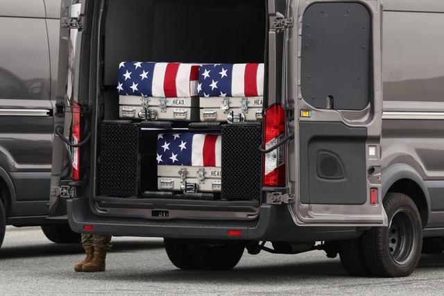 这次,在中东地区阵亡的6位美军士兵的遗体被送回美国多佛基地。